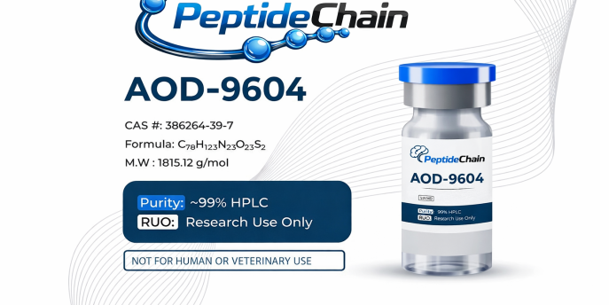 AOD-9604 is another peptide compound often discussed in scientific research contexts. Online searches such as 'AOD-9604 peptides near me' and 'AOD-9604 research peptide USA' show growing interest among laboratories and institutions.